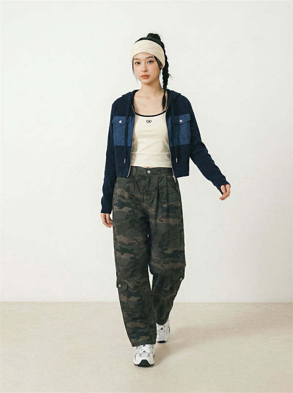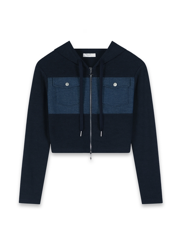 •  Denim Jersey Hooded Outer