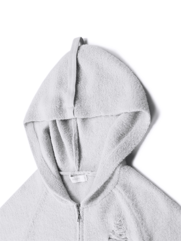 •  Zip Up Hooded Knit Cardigan