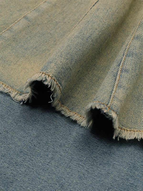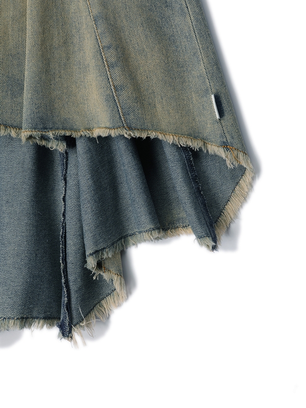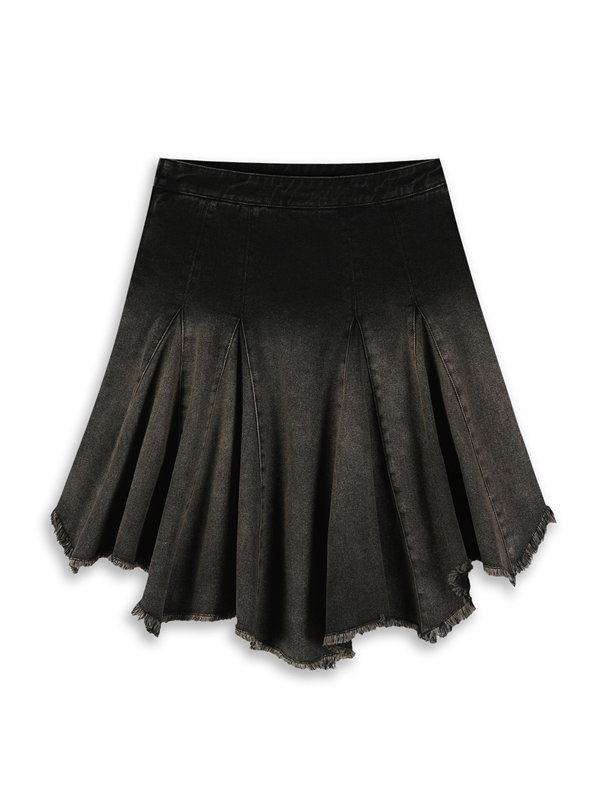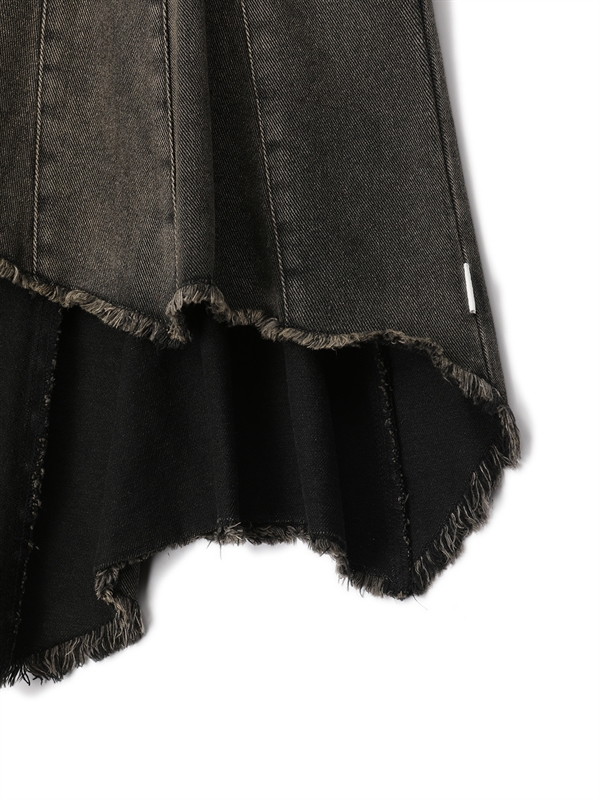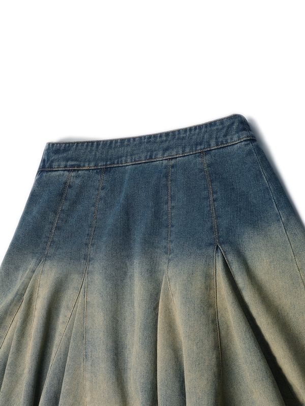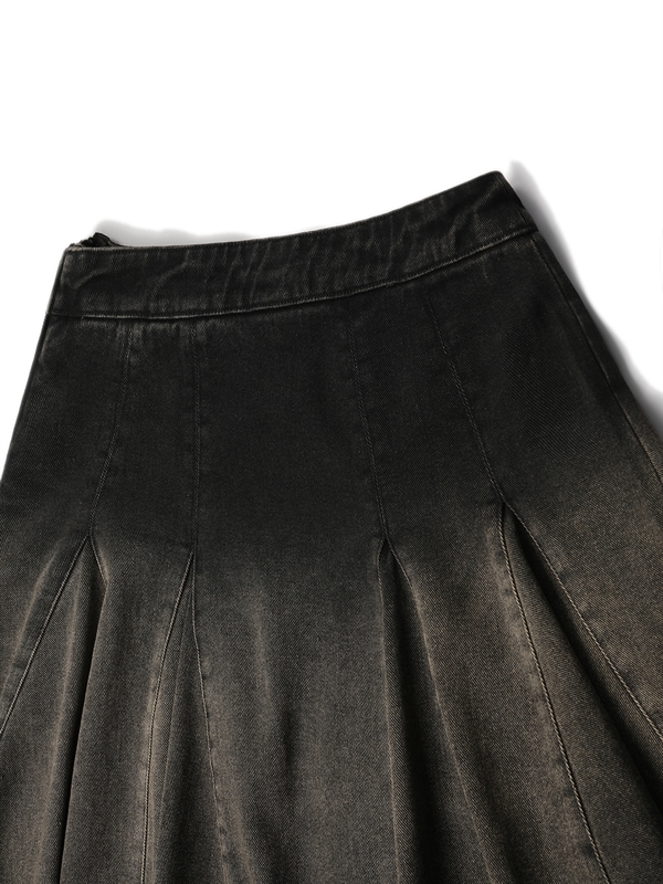 •  Washed Denim Pleated Skirt